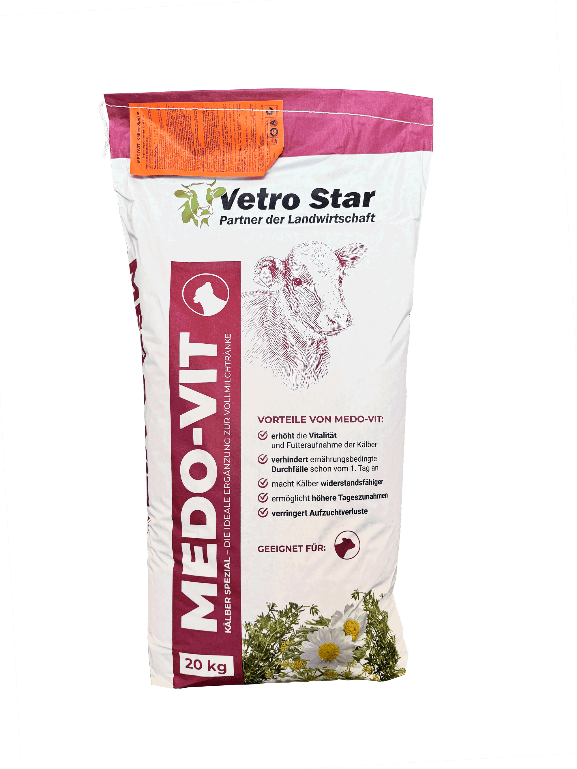 Kälberaufzuchtfutter und hofeigenes Futter werden wesentlich besser verdaut, wenn man Medo-Vit über das Futter streut.